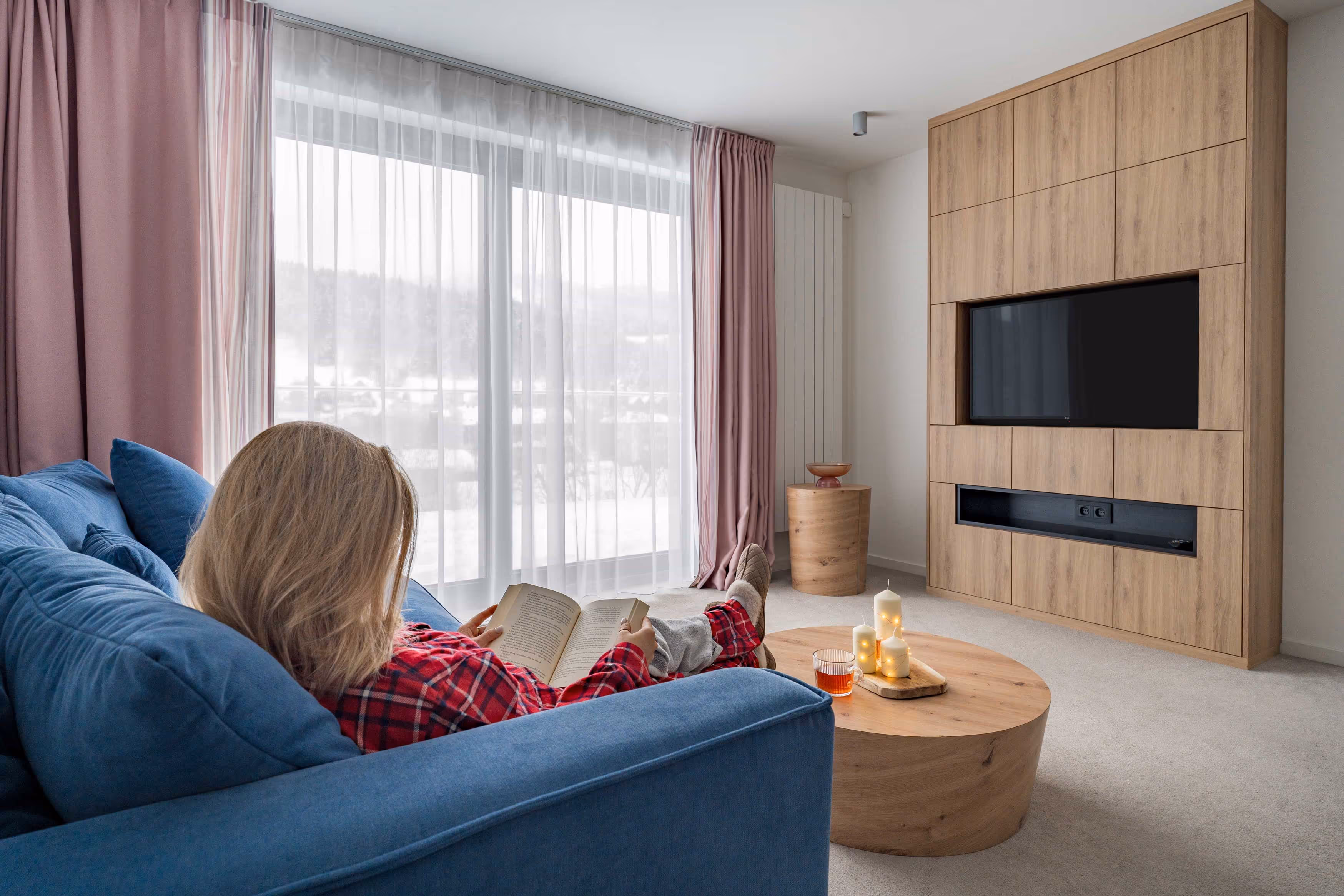 Design & komfort: naturalne materiały, duże okna, prywatne tarasy.